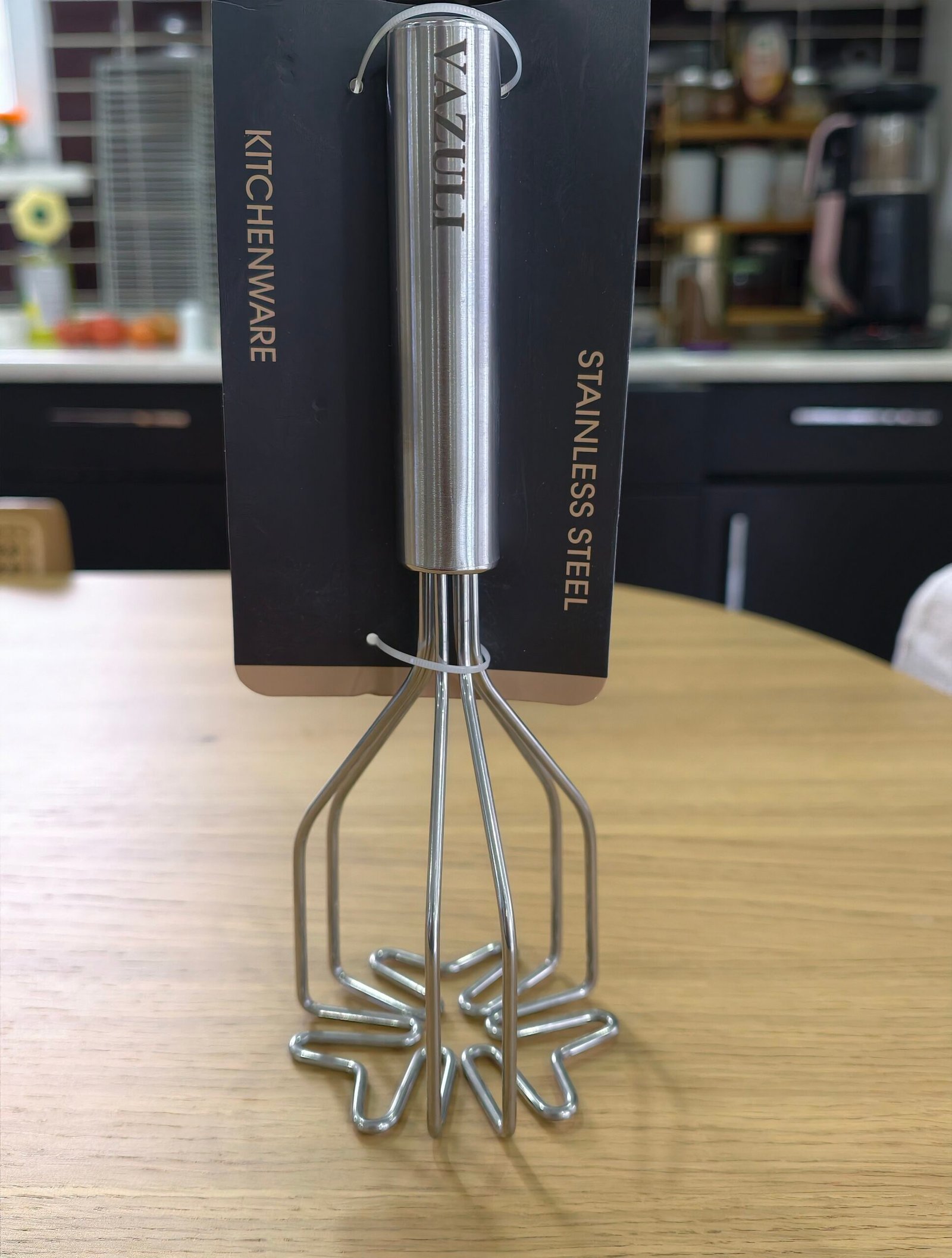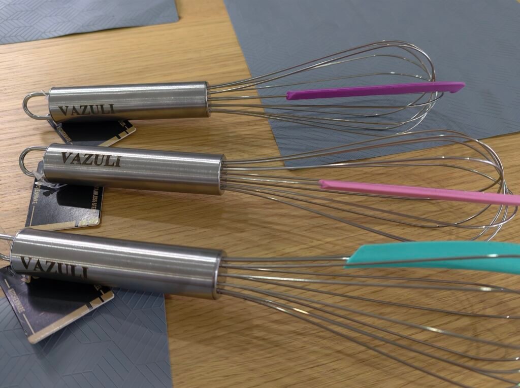 VAZULI offers functional kitchen tools made from durable materials, including stainless steel whisks, coffee pots, rolling pins, and mashers designed for everyday use.